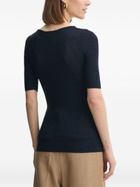 ribbed henley top Highlights - Navy blue - Ribbed texture - Henley placket - Short sleeves - Round neck - Close-fitting Imported Composition Merino 100% Washing instructions Read Manufacturer Guidelines