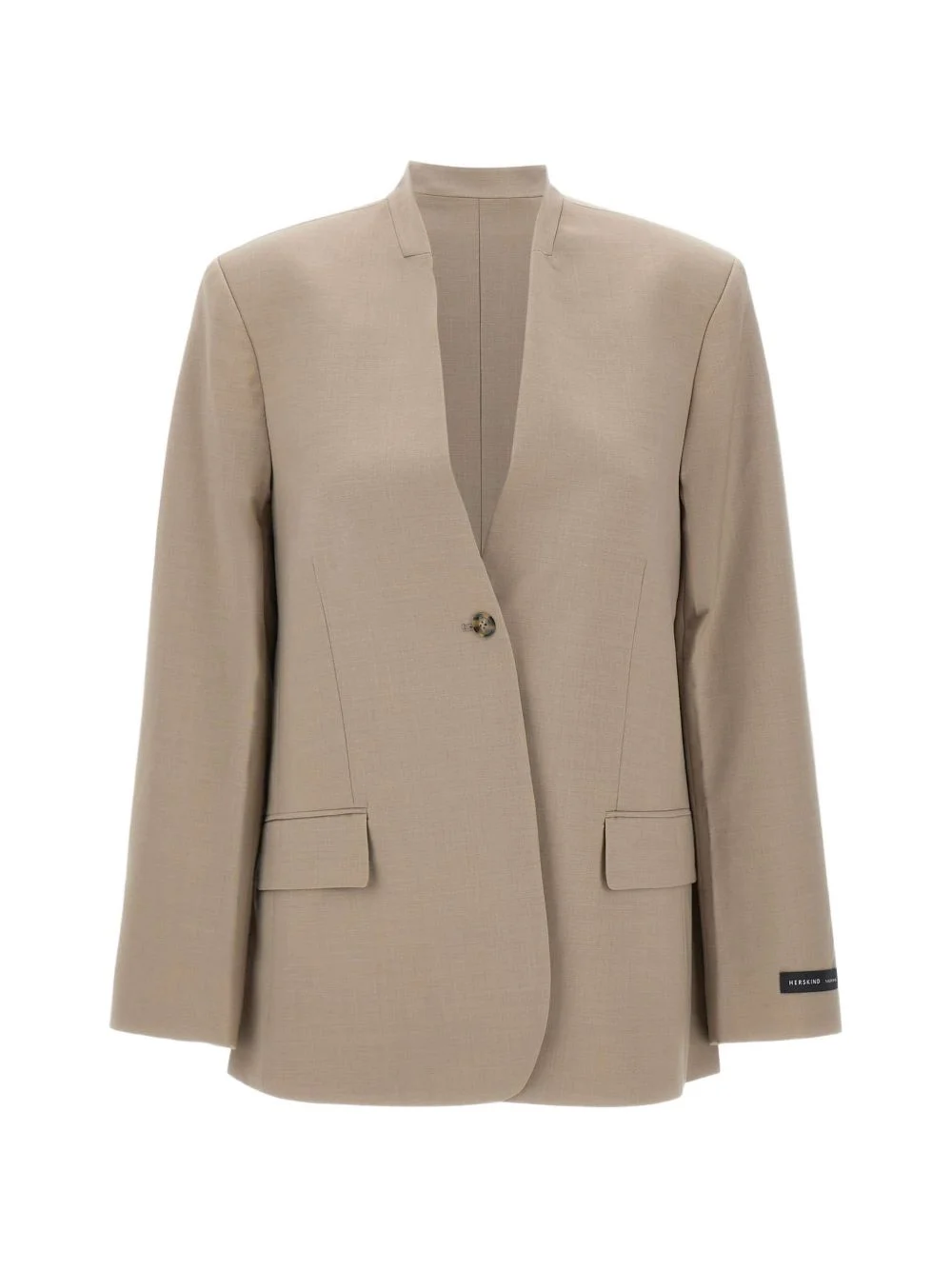 single-button blazer Highlights - Beige - Flap pockets - Single-button closure - Front darts - Side vents - Wide sleeves Imported Composition Polyester 53%, Virgin Wool 43%, Spandex/Elastane 4% Washing instructions Read Manufacturer Guidelines