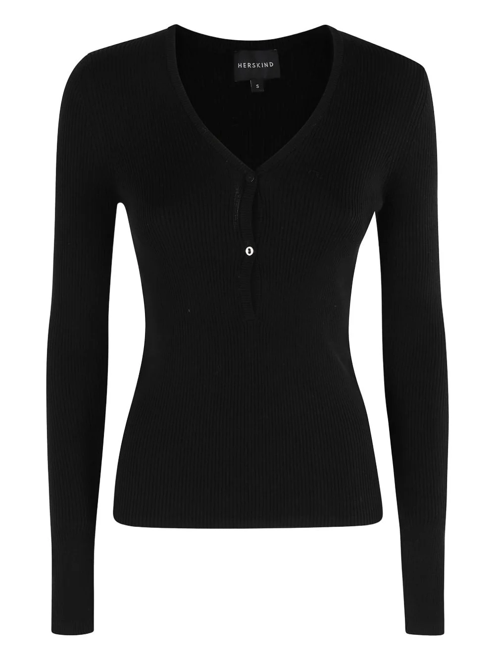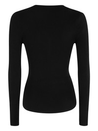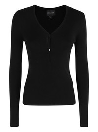 V-neck ribbed top Highlights - Black - Ribbed texture - V-neck - Long sleeves - Button placket - Close-fitting Imported Composition Lyocell 69%, Cotton 25%, Silk 6% Washing instructions Read Manufacturer Guidelines