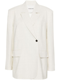Verner single-breasted blazer Highlights - Cream white - Interwoven design - Dart detailing - Notched lapels - Shoulder pads - Long sleeves with buttoned cuffs - English rear vents - Chest welt pocket - Two front flap pockets - Front button fastening - Straight hem - Unlined Imported Composition Outer: Viscose 100% Lining: Acetate 100% SIZE & FIT Model measurements Height 5 ft 10 in(1.78 m) Bust/Chest 32.67 in(83 cm) Hips 35.43 in(90 cm) Waist 23.22 in(59 cm) FittingInformation Designed for an oversized fit, offering additional room throughout The internal shoulder pads offer a structured shape Made from a midweight non-stretch fabric This piece fits true to size – take your usual size Washing instructions Dry Clean Only