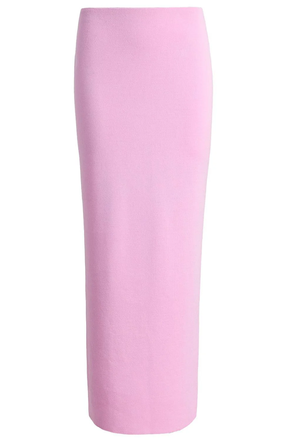 DETAILS AND INSIGHT High Sport cassidy midi skirt in bubblegum. 100% Merino Wool Dry Clean Imported Style 419Y041-672