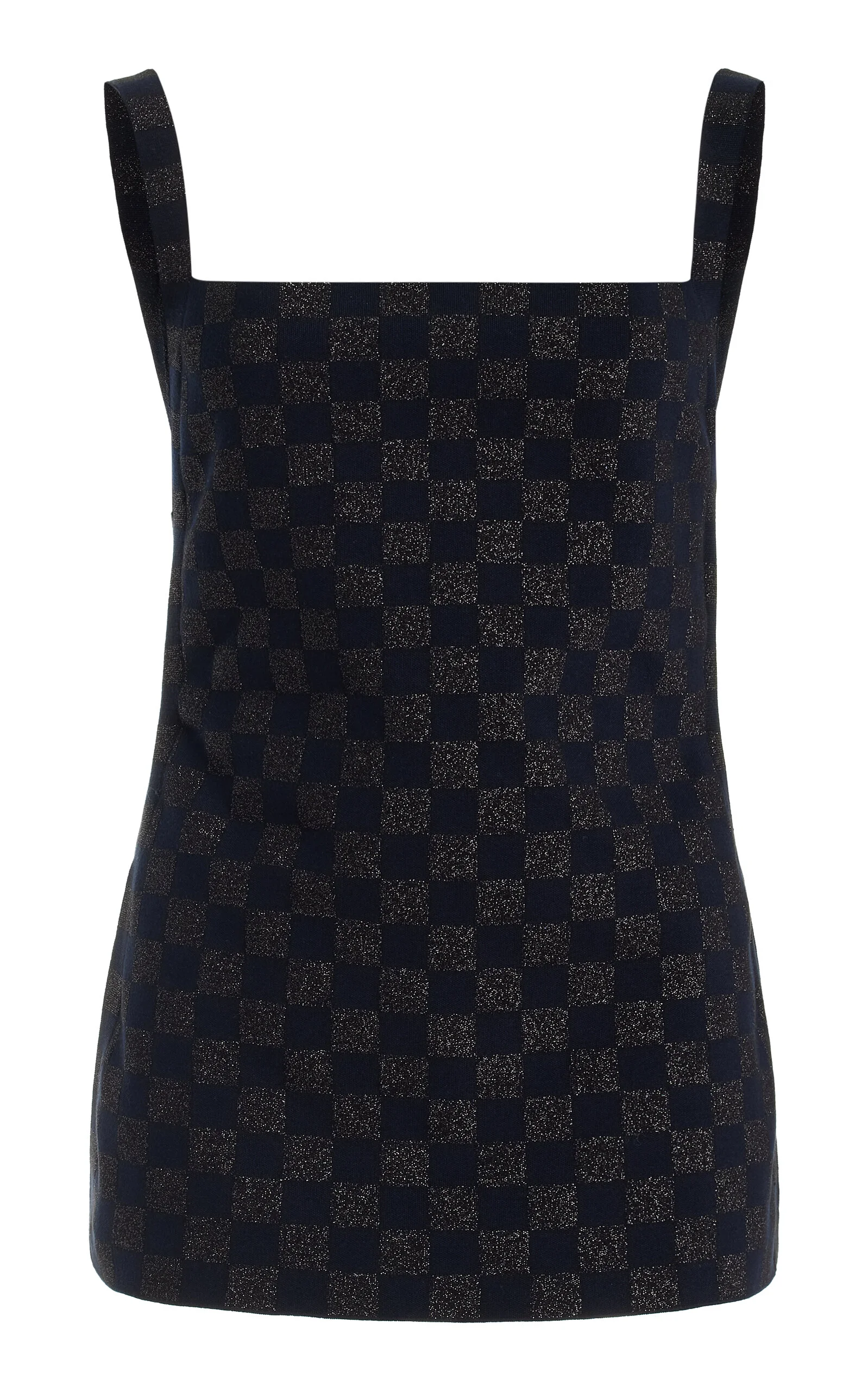 Exclusive Asher Checked Cotton-Blend Knit Apron Top navy