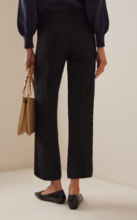 The hyper-considered essentials by Alissa Zachary are tailored from her special signature fabric: a French lycra and soft Italian cotton-blend knit that flatters with a clean finish—and can stand up to the busiest of days. The 'Harry' pants are knit from a stretchy cotton-lycra blend into a pull-on, wide-leg silhouette. Pair your with a cozy pull over from the label. PRODUCT DETAILS - Resort '24 - Pull on - Composition: 65% Cotton, 35% Lycra - Dry clean - Made in Italy SIZE & FIT - Designed for a slim fit