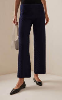 The hyper-considered essentials by Alissa Zachary are tailored from her special signature fabric: a French lycra and soft Italian cotton-blend knit that flatters with a clean finish—and can stand up to the busiest of days. The 'Harry' pants are knit from a stretchy cotton-lycra blend into a pull-on, wide-leg silhouette. Pair your with a cozy pull over from the label. PRODUCT DETAILS - Resort '24 - Pull on - Composition: 65% Cotton, 35% Lycra - Dry clean - Made in Italy SIZE & FIT - Designed for a slim fit