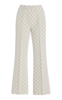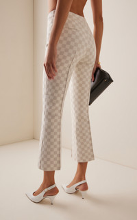 Exclusive Kick Checked Stretch-Cotton Knit Cropped Flared Pants ivory