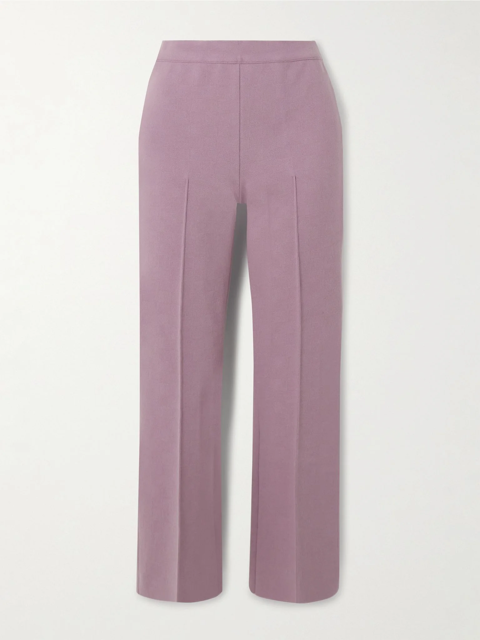 High Sport’s pants are knitted with subtle checks and have cropped hems - two signature elements of the brand. Comfortable yet chic, they’re made with plenty of cotton and have a high-rise elasticated waistband and raised seams that define the legs. Size & Fit - Fits true to size, however those who are between sizes should take the larger size - High-rise, designed for a slim fit with a flared hem - Cropped length - Weighted, slightly stretchy fabric - Model is wearing a size Small Details & Care - Lilac cotton-blend - Pull on - 68% cotton, 28% polyamide, 4% LYCRA® - Dry clean