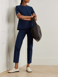 EDITORS'NOTES High Sport's 'Jules' pants follow the same formula as its best-selling 'Kick' flares - easy to style and comfortable to wear. They're knitted from stretch-cotton in a straight-leg fit that's neatly pressed and minimally detailed at the high-rise waist. Look closely and you'll see the tonal jacquard checks. SIZE & FIT - Fits true to size, take your normal size - High-rise, designed for a straight-leg fit - Mid-weight, stretchy fabric - S/M/L sizing DETAILS & CARE - Navy stretch-cotton jacquard - Pull on - 68% cotton, 32% LYCRA® - Machine wash