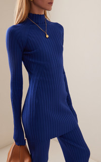 The hyper-considered essentials by Alissa Zachary are tailored from her special signature fabric: a French lycra and soft Italian cotton-blend knit that flatters with a clean finish—and can stand up to the busiest of days. The 'Kat' top glides effortlessly and sleek over your curves, crafted from a stretchy, ribbed-knit blend. PRODUCT DETAILS - Fall/Winter '24 - Slip on - Composition: 83% Viscose, 17% Polyester - Designer color: Royal - Machine wash - Imported SIZE & FIT - Designed for a slim fit