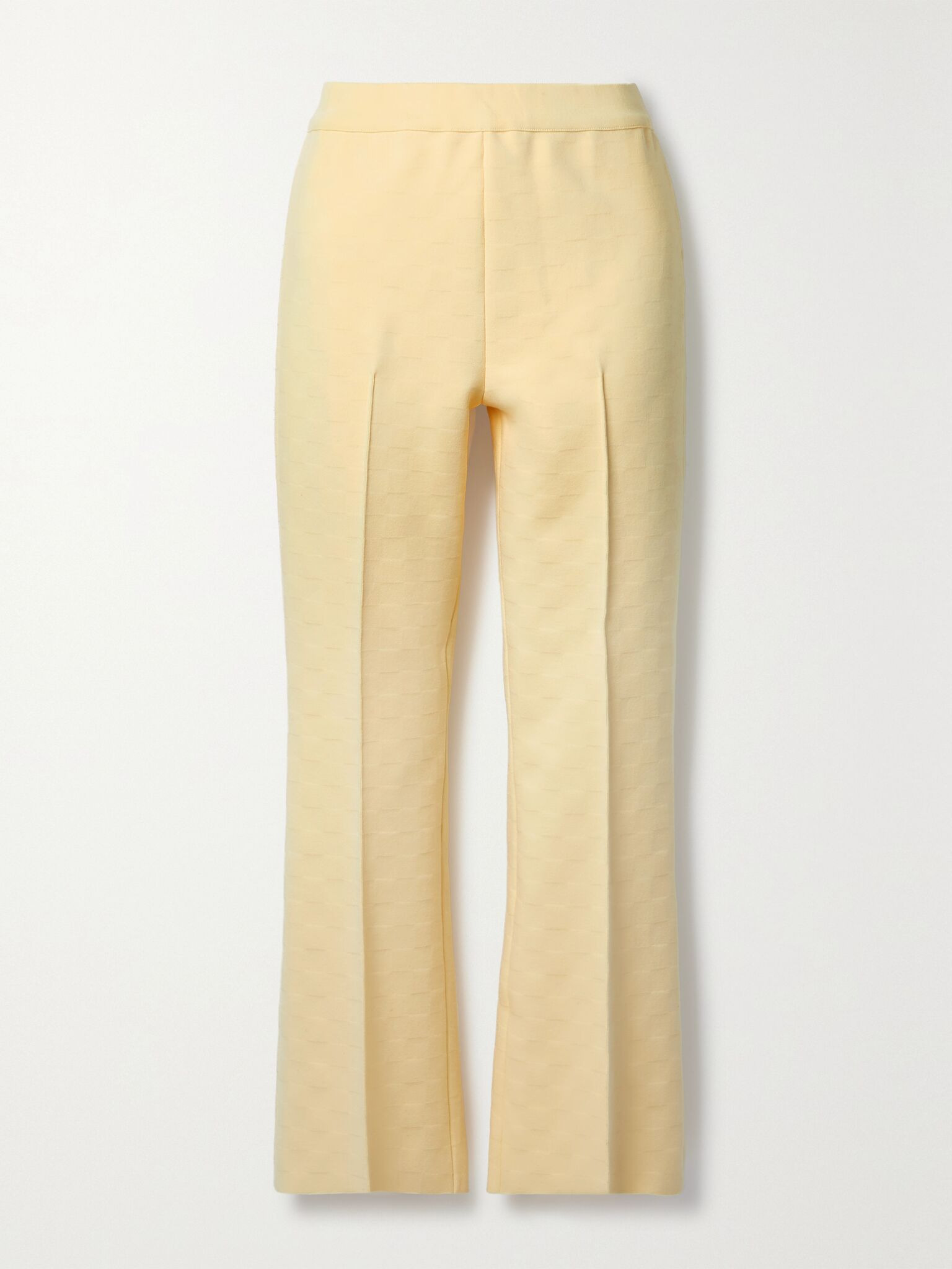 The idea behind High Sport's cropped 'Kick' pants was to create a style that looks polished but feels as comfy as leggings - they're something of a cult item from the emerging New York label. They're knitted from stretch-cotton and are fastening-free, making them easy to pull on and off. Size & Fit - Fits true to size, take your normal size - High-rise, designed for a close fit with a flared hem - Cropped length - Mid-weight knit - S/M/L sizing Details & Care - Pastel-yellow stretch-cotton - Pull on - 68% cotton, 32% LYCRA® - Machine wash Small to size. See Size & Fit notes.