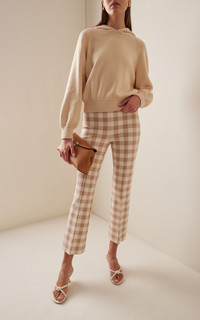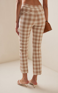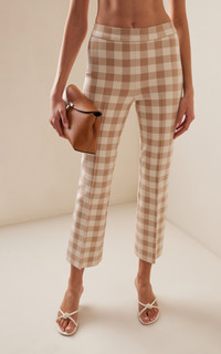 The hyper-considered essentials by Alissa Zachary are tailored from her special signature fabric: a French lycra and soft Italian cotton-blend knit that flatters with a clean finish—and can stand up to the busiest of days. These pull-on 'Kick' pants have slim pin-tucked legs that flare out from the knee to a cropped hem. Pair them with a cozy pullover from the label. PRODUCT DETAILS - Spring/Summer '24 - Pull on - Fabric has a slight checker pattern - Composition: 68% cotton, 32% lycra - Machine wash - Made in Italy SIZE & FIT - Our model is wearing a size Small - Model is 5'10.5" with a 31.5" bust, 23.5" waist, and 35.5" hip - Designed for a slim fit