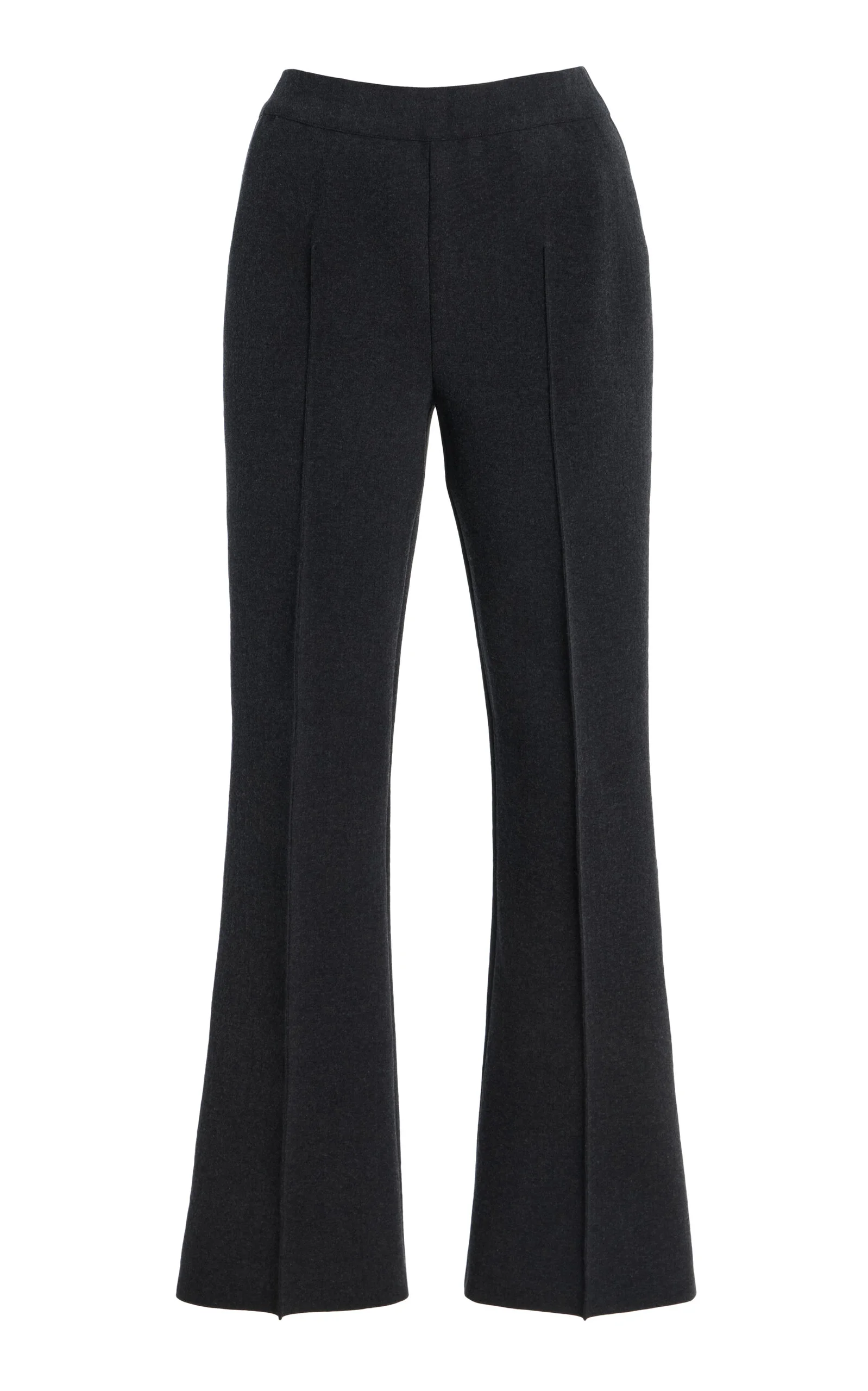 The hyper-considered essentials by Alissa Zachary are tailored from her special signature fabric: a French lycra and soft Italian cotton-blend knit that flatters with a clean finish—and can stand up to the busiest of days. These pull-on 'Kick' pants have slim pin-tucked legs that flare out from the knee to a cropped hem. PRODUCT DETAILS - Fall '25 - Pull on - Composition: 68% cotton, 32% lycra - Designer color: Charcoal - Dry clean - Made in Italy