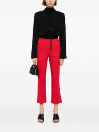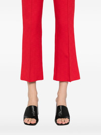 Kick trousers Highlights - Crimson red - Elasticated waistband - Straight hem Made in Italy Composition Cotton 68%, Polyamide 28%, Lycra 4% SIZE & FIT Model measurements Height 5 ft 10 in(1.78 m) Bust/Chest 29.92 in(76 cm) Hips 34.64 in(88 cm) Waist 24.8 in(63 cm) FittingInformation Designed with a cigarette cut, these trousers allow for a close fit at the waist and offer an unrestricted fit through to the ankle The elasticated waist allows for a comfortable fit Made with a midweight knit, this piece offers some stretch Washing instructions Hand Wash