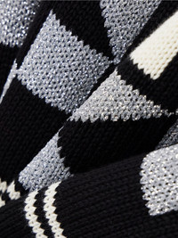Inspired by the '70s, High Sport's 'Lara' sweater is intarsia-knitted with a geometric version of classic Fair Isle patterns - a closer look reveals the metallic threads. It's made from cotton-blend and has a relaxed fit with a turtleneck and ribbed trims. Size & Fit - Fits true to size, take your normal size - Designed for a relaxed fit - Mid-weight knit - Model is 180cm/ 5'11" and is wearing a size Small Model measurements: - Bust: 81cm/ 32" - Waist: 63cm/ 25" - Hip: 91cm/ 36" Details & Care - Black, white and silver metallic cotton-blend - Slips on - 86% cotton, 7% metallic fibers, 7% polyamide - Hand wash