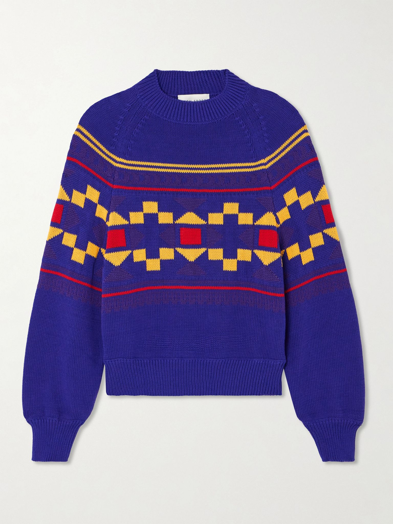 High Sport updates its 'Lara' sweater with a colorful geometric motif inspired by classic Fair Isle styles. It's made from soft cotton-blend and has chunky ribbed trims and chic blouson sleeves. Wear yours apres-ski or with jeans when heading to dinner back in the city. Details & Care - Multicolored cotton-blend - Slips on - 98% cotton, 2% LYCRA®