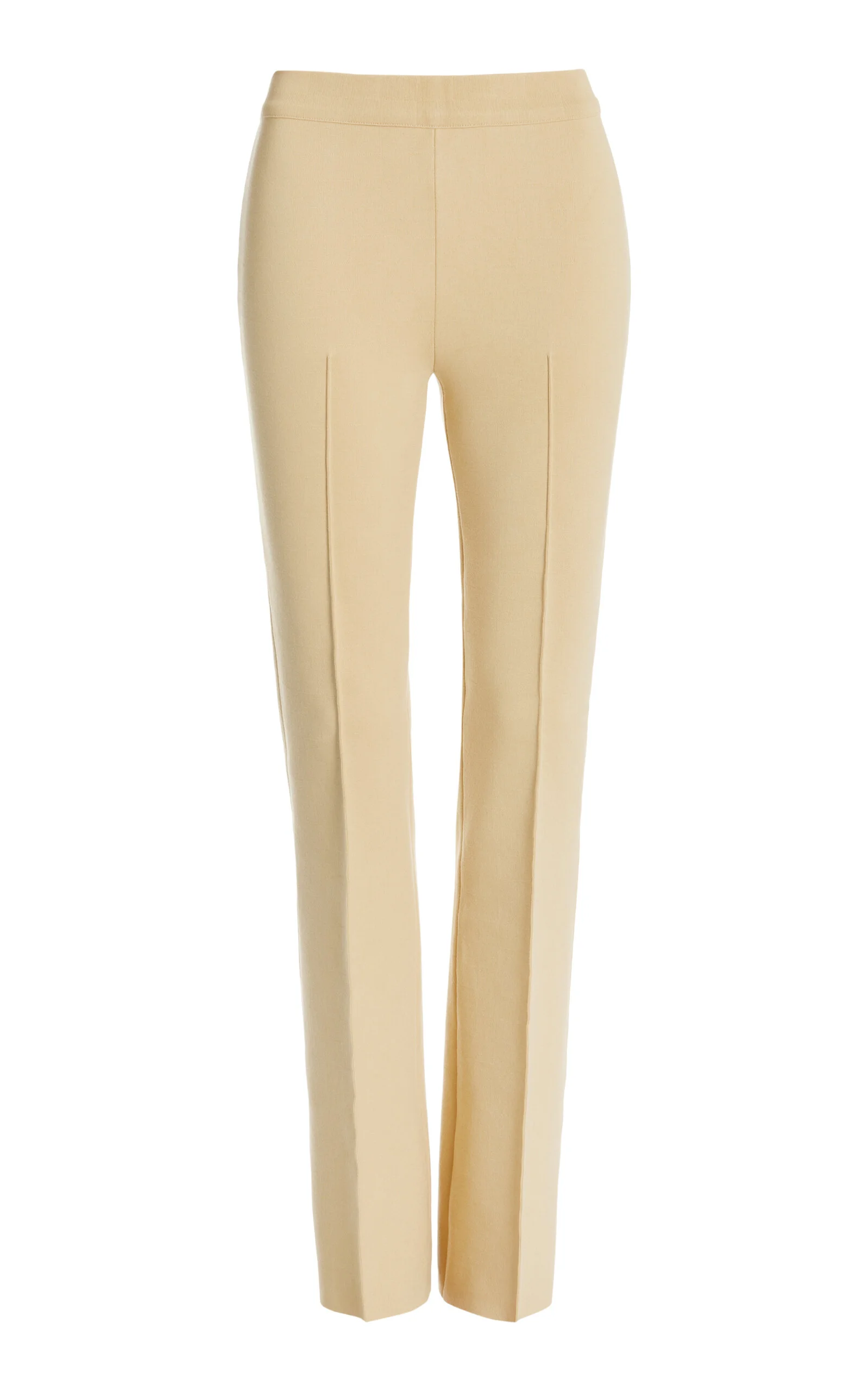 The hyper-considered essentials by Alissa Zachary are tailored from her special signature fabric: a French lycra and soft Italian cotton-blend knit that flatters with a clean finish—and can stand up to the busiest of days. These pull-on 'Kick' pants have slim pin-tucked legs that flare out from the knee. PRODUCT DETAILS - Fall/Winter '24 - Pull on - Composition: 68% Cotton, 32% Lycra - Designer color: New Beige - Machine wash - Made in Italy SIZE & FIT - Our model is wearing a size Small - Model is 5'10" with a 31.5" bust, 23.5" waist, and 35" hip - Designed for a slim fit