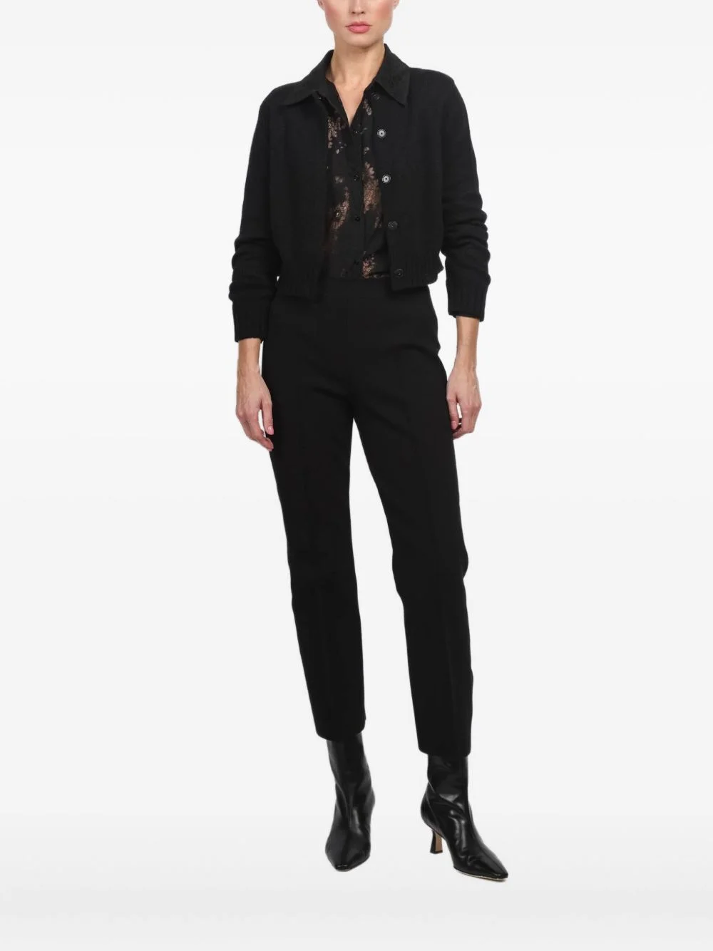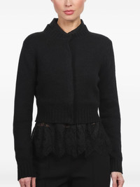 long-sleeved cardigan Highlights - Black - Woo-silk-cashmere blend - Concealed front fastening - Long sleeves - Ribbed hem Imported Composition Wool 70%, Silk 20%, Cashmere 10% Washing instructions Read Manufacturer Guidelines