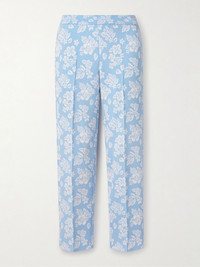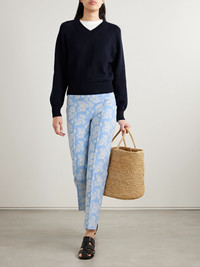 Louis cropped floral-jacquard straight-leg pants Light blue