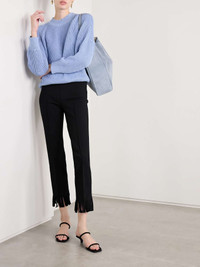Louis fringed cotton-blend jacquard straight-leg pants Black