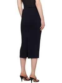 Knit stretch viscose-blend midi skirt. Subtle jacquard check pattern throughout. · Elasticized waistband · Central vent at back hem Supplier color: Navy 76% viscose, 21% polyamide, 3% lycra. Made in Italy 251278F092005