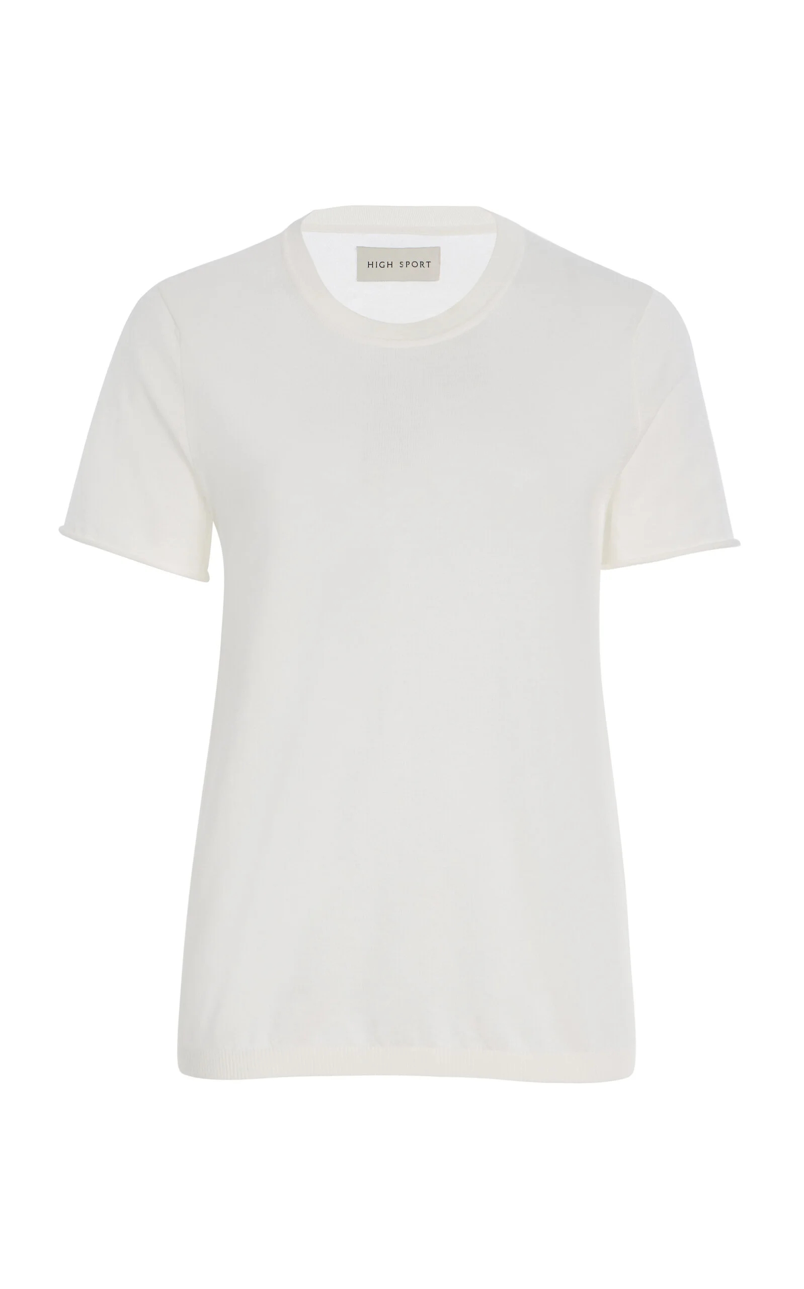 The hyper-considered essentials by Alissa Zachary are tailored from her special signature fabric: a French lycra and soft Italian cotton-blend knit that flatters with a clean finish—and can stand up to the busiest of days. The tee is made of cotton and has a rounded neckline with short sleeves. PRODUCT DETAILS - Spring Summer '25 - Pull on - Composition: 100% Cotton - Designer Color: Ivory - Dry Clean Only - Imported