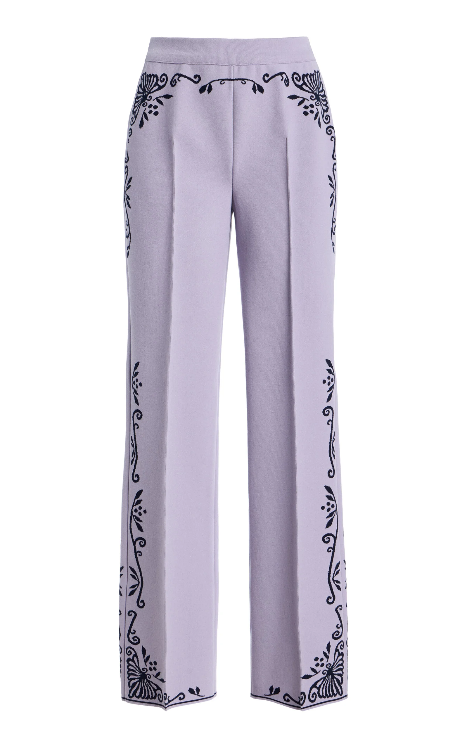 Scroll Cotton-Blend Cropped Flared Pants purple