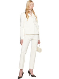 Viscose-blend jersey trousers. Jacquard check pattern throughout. · Belt loops at rib-knit waistband · Pinched seam at legs · Mock pockets at back Part of the exclusive SSENSE Bridal capsule. Supplier color: Ivory 83% viscose, 17% polyester. Made in Italy 252278F087000