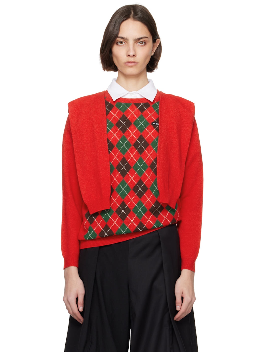 Knit wool sweater. · Rib-knit collar, hem, and cuffs · Jacquard argyle pattern at front · Logo patch at chest · Sleeve-style panel at shoulders Each item is constructed using upcycled garments. Please note colorway may vary. 100% wool. Made in Sweden 251756F100000