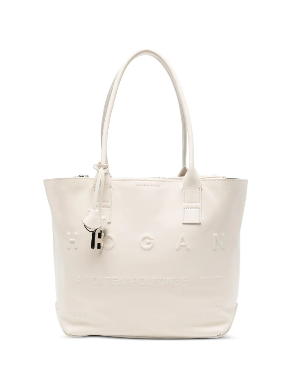 Address embossed pendant tote bag Highlights - Cream - Embossed logo - Pendant - Top handle - Zip fastening - Internal zip pocket - This piece comes complete with a protective dust bag. Imported Composition Outer: Calf Leather 100% SIZE & FIT Measurement DEPTH 5.51 in(14 cm) HEIGHT 10.82 in(27.5 cm) WIDTH 15.35 in(39 cm)