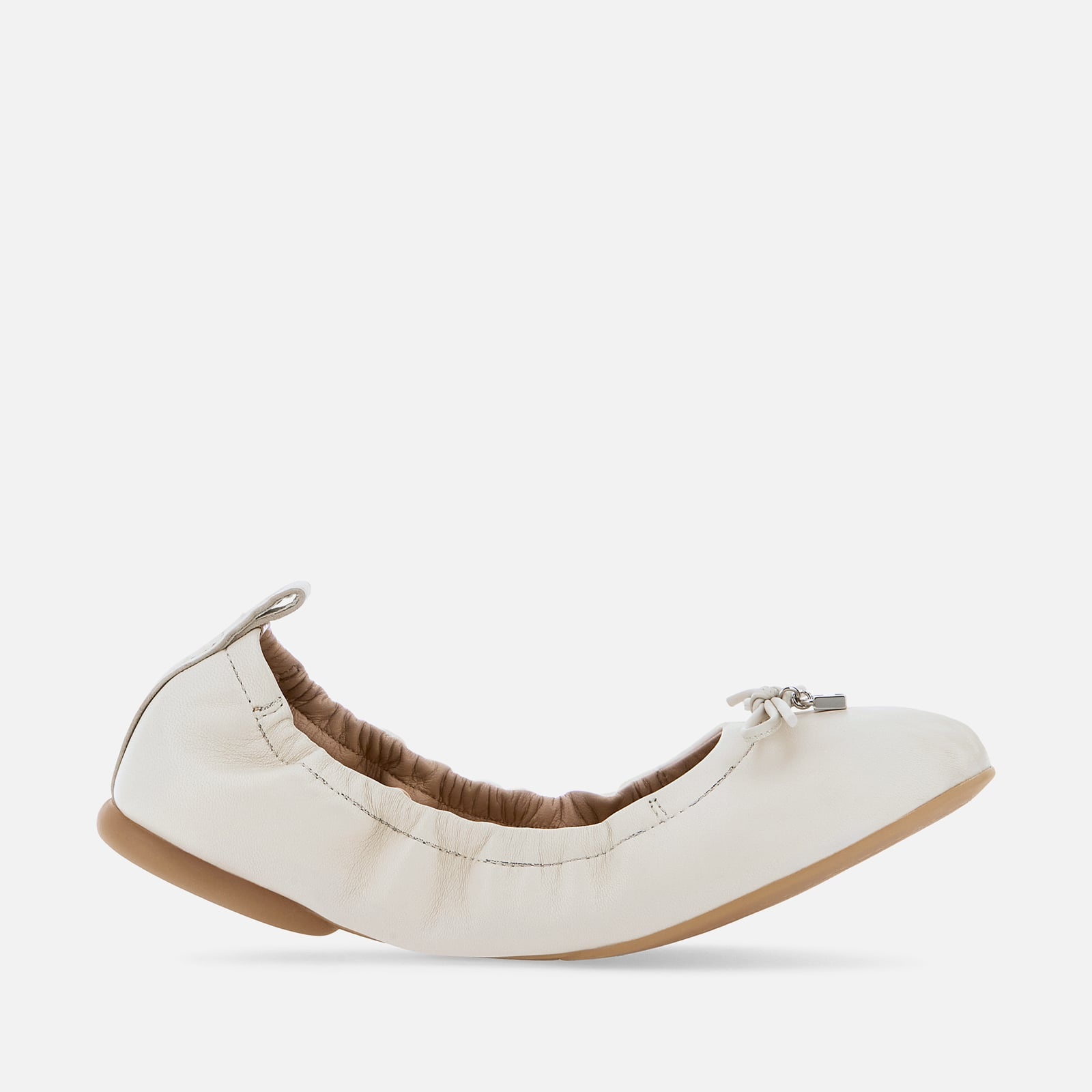 - Women's Hogan H684 Ballerinas - Made in Italy - Nappa leather upper - Smooth leather inserts - Bow with metal H charm - Elastic edge - Leather lining - Leather covered soft insole - Rubber outsole - Total height 0.8 ins - Maintenance and care cards included - Fabric dustbag included Ultra supple, ultra comfort and featherweight. Characterized by a nappa leather upper, featuring pleats on the toe and elastic top edge, the Hogan H684 ballerinas come with the metal logo charm on the bow. With a fitting construction and a flexible split outsole, they come with a soft insole. A versatile model, declining femininity in a dynamic and easy-going formula.