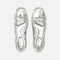 - Women's Hogan H685 Ballerinas - Made in Italy - Nappa leather upper - Bow with metal H charm - Elastic edge - Leather lining - Leather covered soft insole - Rubber outsole - Total height 0.8 ins - Maintenance and care cards included - Fabric dustbag included Ultra supple, ultra comfort and featherweight. Characterized by a metallic nappa leather upper, featuring pleats on the toe and elastic top edge, the Hogan H684 ballerinas come with the metal logo charm on the bow. With a fitting construction and a flexible split outsole, they come with a soft insole. A versatile model, declining femininity in a dynamic and easy-going formula.
