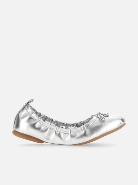 - Women's Hogan H684 Ballerinas - Made in Italy - Nappa leather upper - Smooth leather inserts - Bow with metal H charm - Elastic edge - Leather lining - Leather covered soft insole - Rubber outsole - Total height 0.8 ins - Maintenance and care cards included - Fabric dustbag included Ultra supple, ultra comfort and featherweight. Characterized by a nappa leather upper, featuring pleats on the toe and elastic top edge, the Hogan H684 ballerinas come with the metal logo charm on the bow. With a fitting construction and a flexible split outsole, they come with a soft insole. A versatile model, declining femininity in a dynamic and easy-going formula.