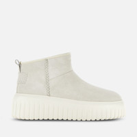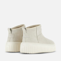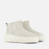 - Women's suede ankle boots - Made in Italy - Suede upper - Back patch with stamped Hogan logo - Shearling effect lining and insole - EVA outsole - Total height 2.3 ins approx - Maintenance and care cards included - Fabric dustbag included Characterized by an extra-light outsole with vertical stripes, the H-Stripes ankle boots come with an essential and versatile line. Crafted in soft suede, with warm shearling effect fleece lining, they come with the Hogan patch on the heel, with artisanal taste exposed stitching.