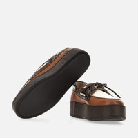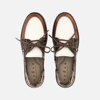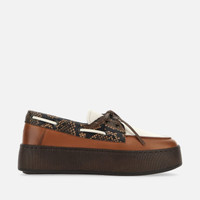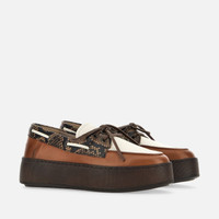 - Women's Hogan H681 Boat Shoes - Made in Italy - Leather upper - Reptile print detailing - Hogan logo stamped on the back - Leather lining - Memory foam insole 0.3 ins - EVA outsole - Total height 2.2 ins - Maintenance and care cards included - Fabric dustbag included With a unique wrapped outsole and a sober yet sophisticated look, the Hogan H681 boat shoes in leather with reptile print are characterized by a lower edge that matches the upper. A handcrafted construction and a lightweight platform rubber outsole, they feature the distinctive woven tie and the Hogan logo on the heel. Complemented by a memory foam insole, they are an urban must-have for detail-oriented enthusiasts.