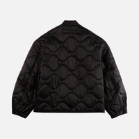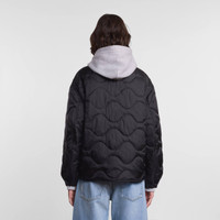 - Women's quilted bomber jacket - Fitting: comfort - Item composition: 100% polyamide, lining 51% polyester, 49% elastomultiester, padding 100% polyester - Maintenance and care cards included Bomber jacket quilted in ripstop nylon, with lightweight padding and structured sleeves. Featuring elastic cuffs and a button fastening, it comes with two welt pockets, one with branded metal tag. The back tag with H stitching complements the garment.