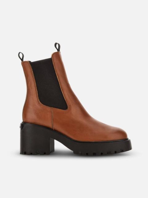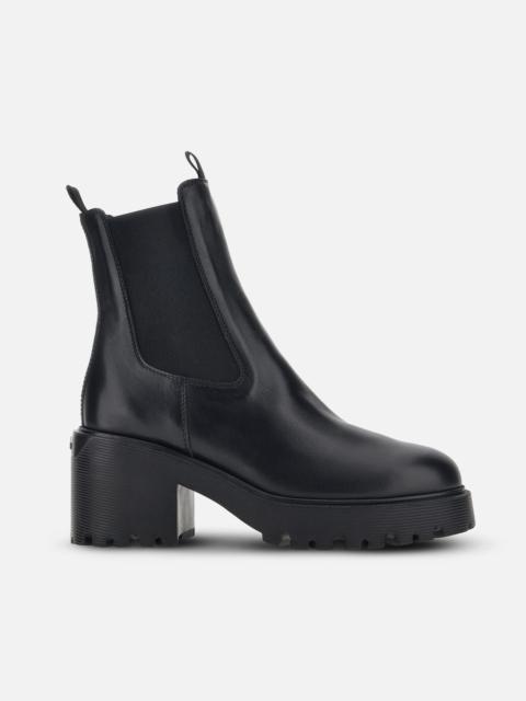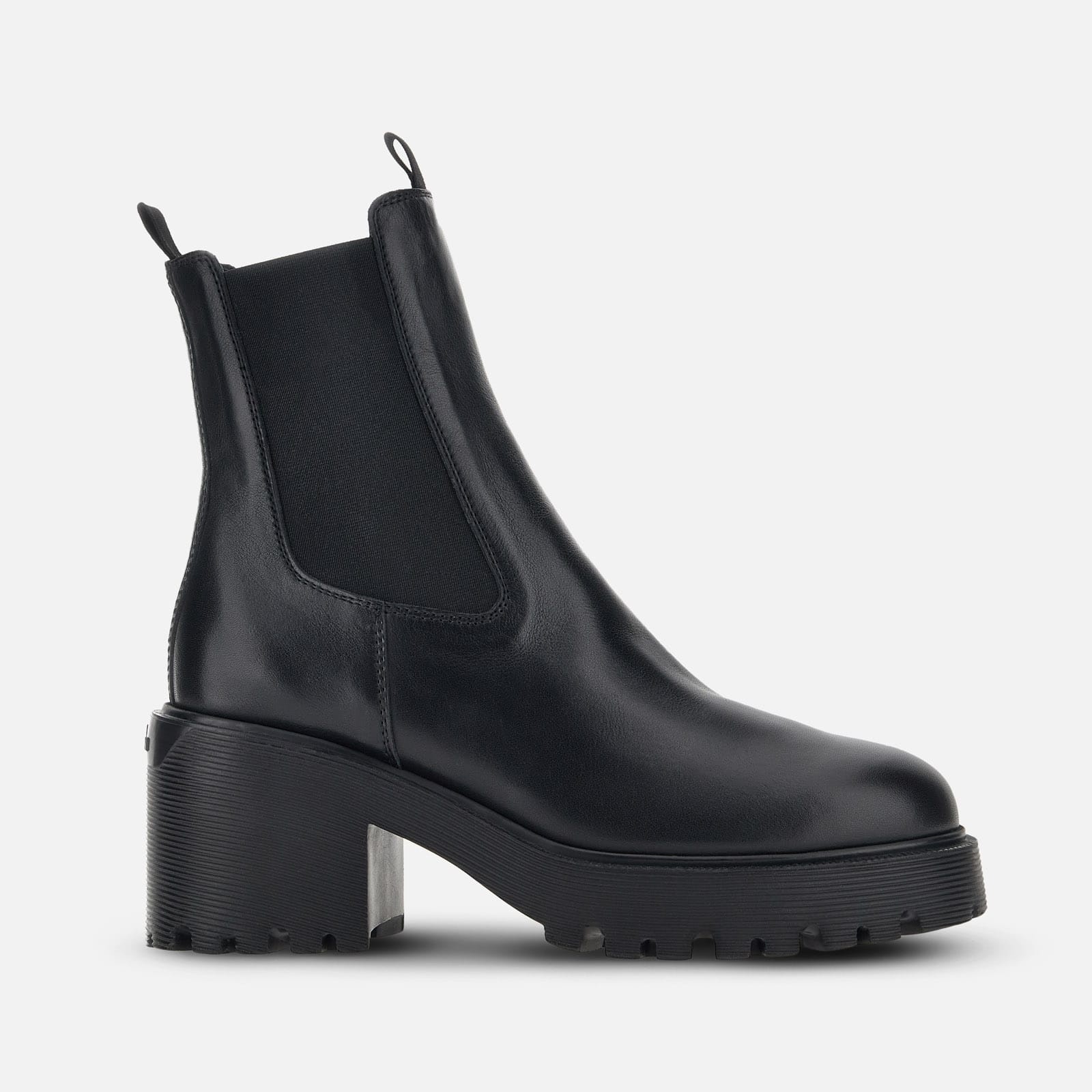 - Heeled lugged ankle boots - Made in Italy - Smooth leather upper - Memory foam insole 0.2 ins - Heel 3 ins - Rubber outsole - Maintenance and care cards included - Fabric dustbag included New combination of urban taste and femininity, these Chelsea boots feature a rounded toe. The bold lugged outsole character, with milleraies high heel, is softened by the soft lines of the smooth leather upper with side elastic inserts. The comfy memory foam insole allows this informal elegance passe-partout to be worn all day long. MOD. HXW6490DV80KXTB999