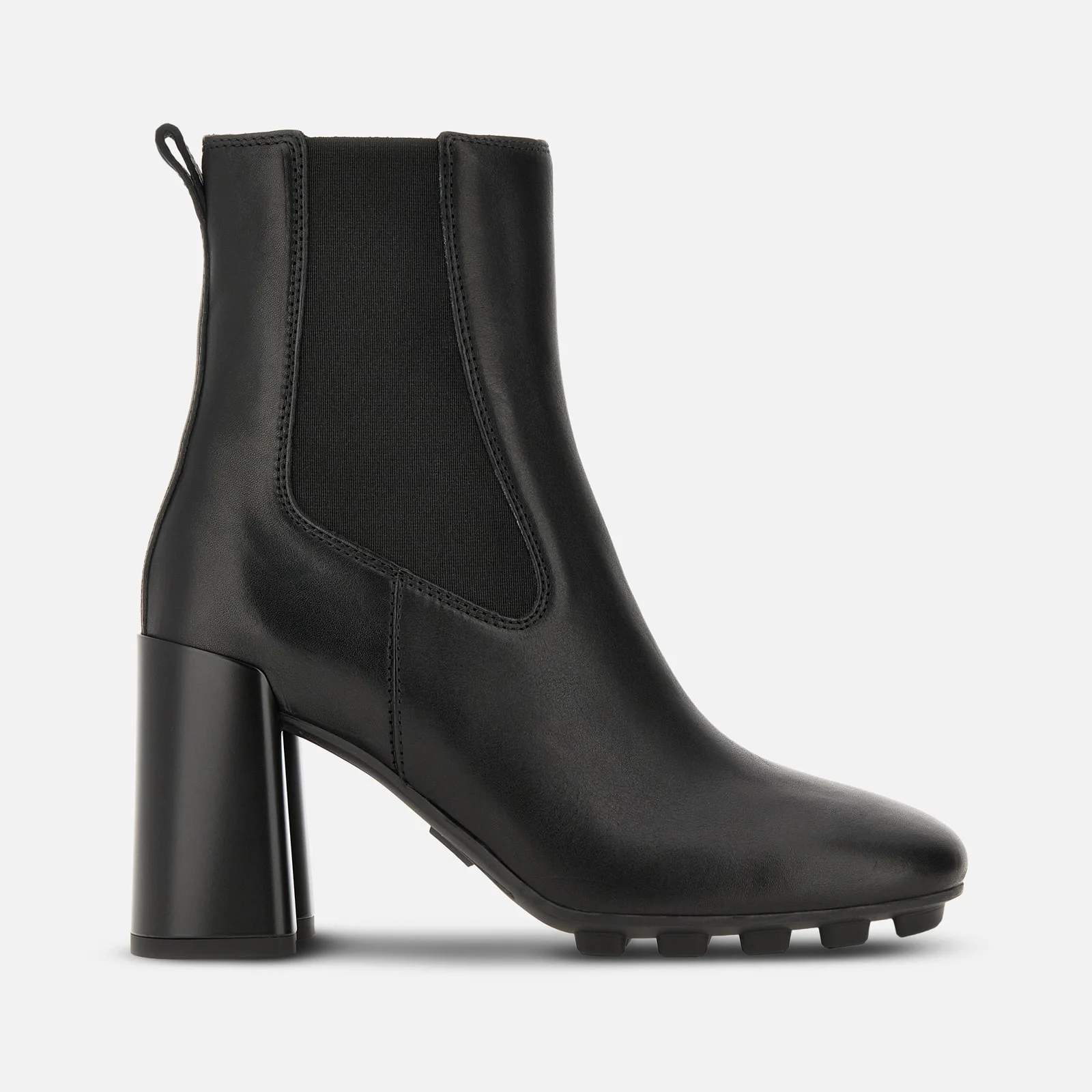 - Hogan H695 Chelsea Boots - Made in Italy - Smooth leather upper - Elastic side inserts - Memory foam insole 0.2 ins - Rubber outsole - Total height 3.5 ins - Maintenance and care cards included - Fabric dustbag included With a sleek and streamlined silhouette, The Hogan Chelsea Boot in smooth leather comes in a construction featuring a comfortable block heel and a padded sole. Finished with signature H-stitching at the back, it features a soft memory foam insole.