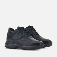 - Women's Hogan Interactive sneakers - Made in Italy - Smooth leather upper - Padded side H - Exposed stitching - Removable insole 0.5 ins - Rubber outsole - Total height 2.2 ins - Maintenance and care cards included - Fabric dustbag included Hogan Interactive is a real timeless icon, characterized by an elegant design and a lightweight outsole to guarantee a tall-and-slim look. Since 1997 it gets renewed with each collection still representing an absolute functional and contemporary luxury icon. These refined women's sneakers in leather come with a padded side H. Perfect for a sporty-chic look. MOD. HXW00N00010ZKAB999