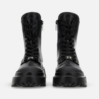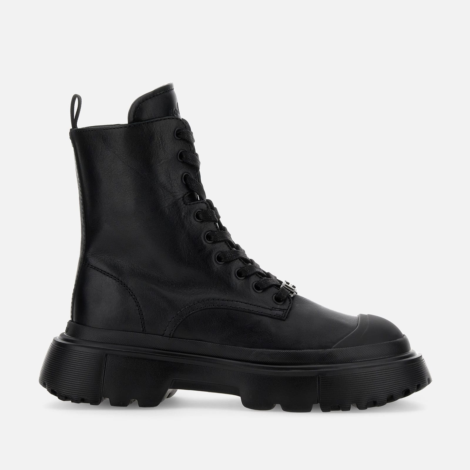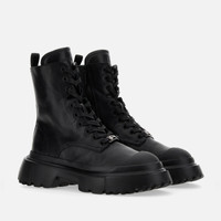 - Women's leather combat boots - Made in Italy - Smooth leather upper - Metal H eyelet - Side zip - Memory foam insole 0.2 ins - EVA outsole - Total height 2 ins - Maintenance and care cards included - Fabric dustbag included - Additional laces included New must-have for contemporary urban style, these combat boots feature a lugged outsole with milleraies detailing. Designed for optimal grip, the tread comes with external H-shaped blocks. The military-inspired style, emphasized by exposed stitching, is balanced by the urban taste of the lines. The prominent toe and heel add character and three-dimensionality to the smooth leather upper, enhanced by a metal H eyelet. The memory foam insole guarantees a cushioned fit. MOD. HXW6190EO40KXTB999