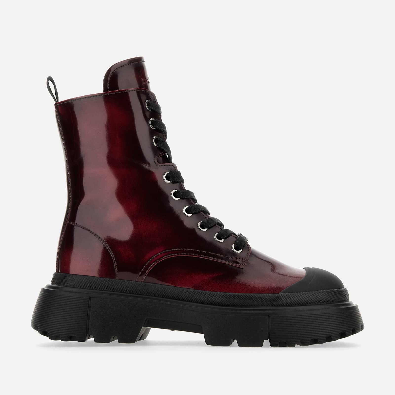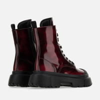 - Women's leather combat boots - Made in Italy - Brush-off leather upper - Metal H eyelet - Side zip - Memory foam insole 0.2 ins - EVA outsole - Total height 2 ins - Maintenance and care cards included - Fabric dustbag included - Additional laces included New must-have for contemporary urban style, these combat boots feature a lugged outsole with milleraies detailing. Designed for optimal grip, the tread comes with external H-shaped blocks. The military-inspired style, emphasized by exposed stitching, is balanced by the urban taste of the lines. The prominent toe and heel add character and three-dimensionality to the brush-off leather upper, enhanced by a metal H eyelet. The memory foam insole guarantees a cushioned fit. MOD. HXW6190EO40AKTR600