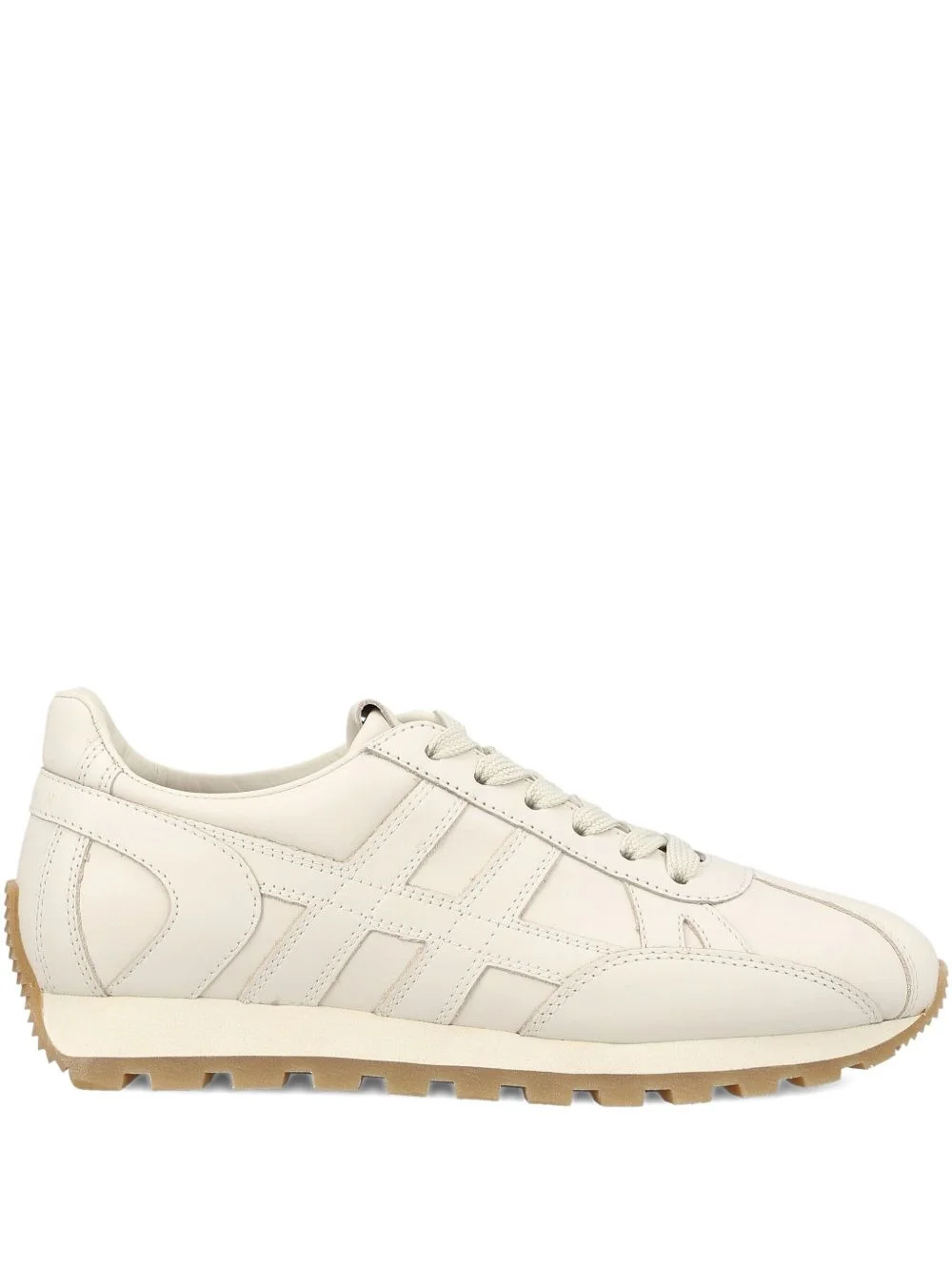 embossed-logo leather sneakers Highlights - Beige - Leather upper - Rubber sole - Embossed h logo - Exposed stitching - Sculpted sole Made in Italy Composition Lining: Calf Leather 100% Sole: Rubber 100% Outer: Calf Leather 100%