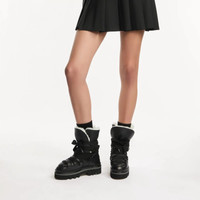 - Women's Hogan H675 Boots - Sheepskin nappa leather upper - Calfskin leather detailing - Hogan logo stamped on the heel - Ovine fur lining - Leather covered soft insole 0.2 ins - Leather welt - EVA outsole - Total height 2.2 ins - Maintenance and care cards included - Fabric dustbag included Inspired by mountain equipment, these pull-on apres-ski boots come with a warm fur lining. Crafted in sheepskin nappa leather, the puffy upper features maxi laces with street style references. The extralight lugged outsole is enhanced by a serrated leather welt, while the memory foam insole complements the softness of this wintery model.
