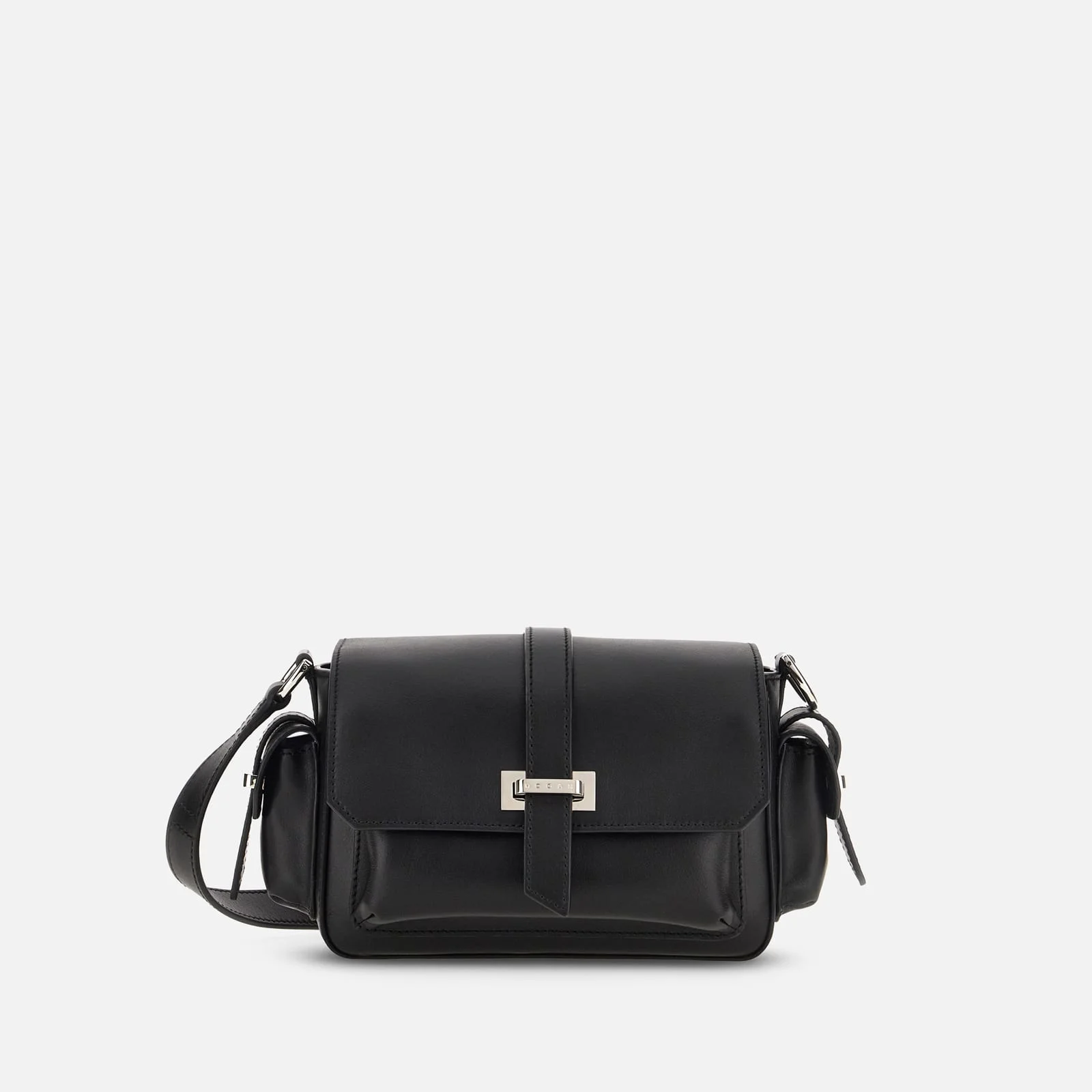 - Women's Hogan Flap Bag - Item crafted in leather - Semi-concealed front pocket - Side pockets with flap and straps - Branded metal loops - Flap and strap closure - Dimensions: 7.9 x 5.5 x 3 ins - Versatile shoulder strap: extended/double handle - Maintenance and care cards included - Fabric dustbag included Compact but voluminous, functional but stylish. New interpretation of the classic camera bag, this model in soft leather is perfect for the everyday look. A flap with engraved metal logo on the strap keeper characterizes both the central compartment and sides. Featuring a semi-concealed front pocket, it comes with a shoulder strap for carrying crossbody or over the shoulder.