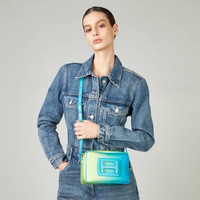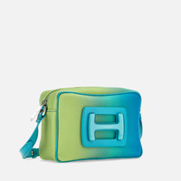 - Crossbody mini bag - Item crafted in fabric - Dégradé effect print - H buckle with Hogan logo - Zip closure - Dimensions: 7.5 x 5.3 x 2.8 ins, adjustable shoulder strap - Maintenance and care cards included - Fabric dustbag included Cool and feminine, the Hogan H-Bag collection represents a contemporary synthesis of functionality and elegance. Featuring a plexiglass maxi H buckle, this camera bag is crafted in a vibrant dégradé fabric, with pop colors. Closed with a practical zip, it comes with an adjustable shoulder strap. MOD. KBW01MX4100QCN0786