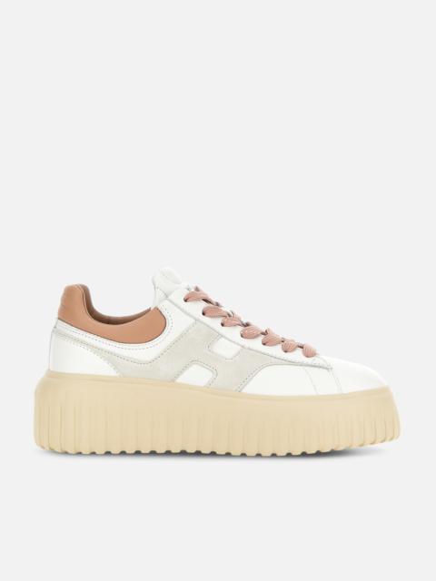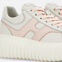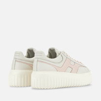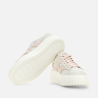 - Women's Hogan H-Stripes Sneakers - Made in Italy - Nappa leather upper - Side H - Memory foam insole 0.3 ins - EVA outsole - Total height 2.3 ins - Maintenance and care cards included - Fabric dustbag included - Additional laces included A new style with sporty and versatile lines, the H-Stripes features an extralight outsole with vertical stripes. The upper, with a compact and balanced design, is characterized by an H that extends across the side. The upper trim, with stitching on the back patch, comes with a soft padding. This version is crafted in nappa leather, with a memory foam insole that guarantees comfortable cushioning.