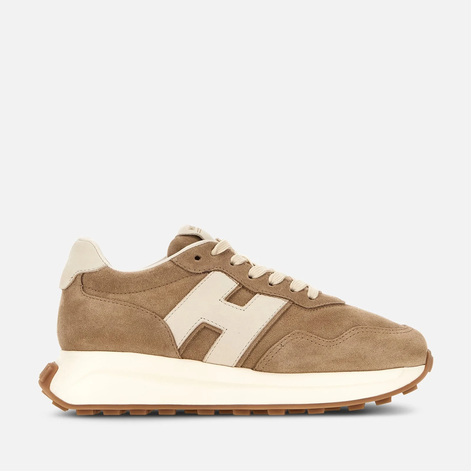 - Women's Hogan H641 Sneakers - Made in Italy - Suede upper - Nubuck inserts and side H - Memory foam insole 0.3 ins - Rubber outsole - Total height 2 ins - Maintenance and care cards included - Fabric dustbag included - Additional laces included Bold look and retro references coexist in the Hogan H641 sneakers. Designed for optimal grip, the lightweight outsole comes with a tread with H-shaped spikes. These sneakers feature a suede upper, with nubuck inserts and side H. The memory foam insole guarantees a cushioned fit.