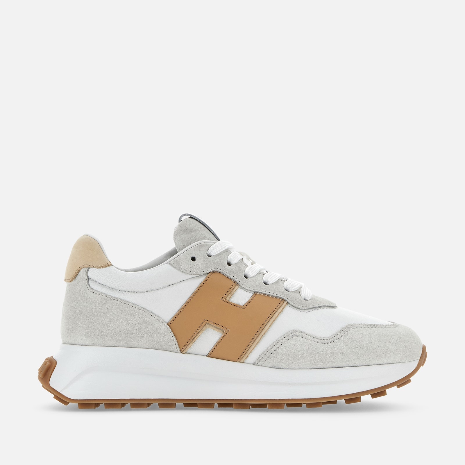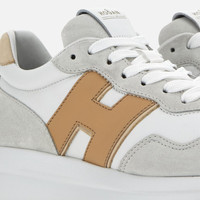- Women's Hogan H641 Sneakers - Made in Italy - Suede upper - Nappa leather inserts - Nubuck side H - Smooth leather detailing - Memory foam insole 0.3 ins - Rubber outsole - Total height 2 ins - Maintenance and care cards included - Fabric dustbag included - Additional laces included Bold look and retro references coexist in the Hogan H641 sneakers. Designed for optimal grip, the lightweight outsole comes with a tread with H-shaped spikes. These sneakers feature a suede upper, with soft nappa leather inserts and nubuck side H. The memory foam insole guarantees a cushioned fit.