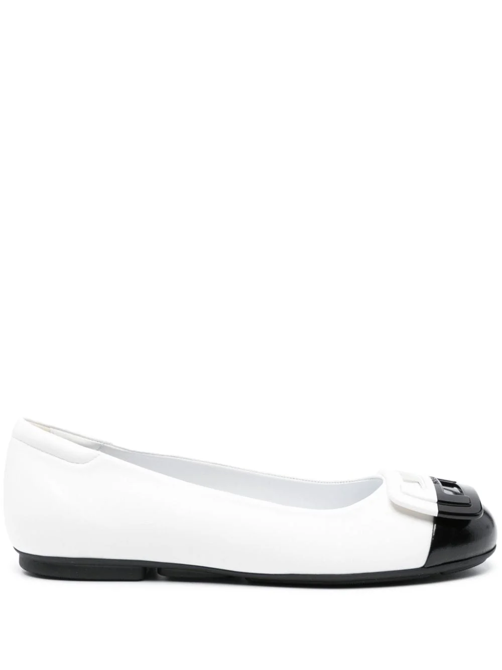 H661 leather ballerina shoes Highlights - White/black - Calf leather - Smooth grain - Applique logo to the front - Logo at the sole - Round toe - Branded leather insole - Flat rubber sole - Slip-on style - This piece comes complete with a protective dust bag. Made in Italy Composition Leather 100% SIZE & FIT Measurement HEEL 0.39 in(1 cm)