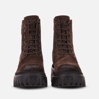 - Women's Hogan H700 Ankle Boots - Made in Italy - Suede upper - Smooth leather patch with stamped brand address - Zip on the inside - Leather lining - Memory foam insole 0.3 ins - Rubber outsole - Total height 3 ins approx - Maintenance and care cards included - Fabric dustbag included The Hogan H700 is a statement chunky design construction, fusing oversize H branding into the iconic H-Stripes sole. This lace-up ankle boot is crafted in suede, with used-effect detailing and the Hogan address patch on the outside. A juxtaposition of rugged performance and urban chic, with a comfortable memory foam insole.