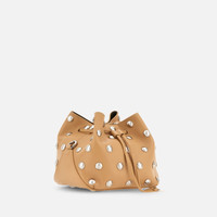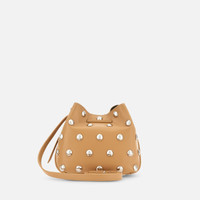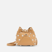 - Women's bucket bag - Item crafted in leather - Applied studs - Hogan logo stamped on the front - Dimensions: 7.3 x 6.7 x 6.1 ins - Adjustable versatile shoulder strap - Magnetic button closure - Branded charm drawstring - Metal feet - Maintenance and care cards included - Fabric dustbag included Decorated with maxi studs, this bucket bag in leather can be worn in versatile ways: crossbody, over the shoulder, or by hand. A creation with an ever-changing look, closed with a drawstring enhanced by branded charms.