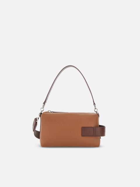 - Women's mini bowling bag - Item crafted in hammered leather - Smooth leather inserts - Side handle with stamped Hogan logo - Fixed handle with stamped Via Monte Napoleone address - Adjustable and removable shoulder strap - Dimensions: 8.3 x 5.5 x 4.3 ins - Zip closure - Cotton lining - Maintenance and care cards included - Fabric dustbag included A new chapter of the Hogan classics, reinterpreting the iconic Script design with an exposed-grained leather and brand address detailing. This zipped mini bowling bag comes with a soft construction, an adjustable, removable shoulder strap and a ‘hand-through’ handle on side inspired by classic boot bags.